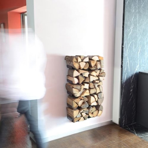 Mit diesem hochmodernen Kaminholzregal lassen Sie den Eindruck erwecken, als würde Ihre Brennholz in der Luft schweben. Dieses außergewöhnliche Kaminholzregal von Radius-Design gibt es in der Variante mit frei stehenden dekorativen Füßen oder als Wandmontage. Das Brennholz liegt auf dünnen, aber dennoch sehr stabilen, Stahlblechen die an der Regal-Konstruktion montiert sind. Wenn das Regal voll beladen ist, ist die Konstruktion nicht mehr zu sehen und man hat das Gefühl das Brennholz wäre freischwebend.